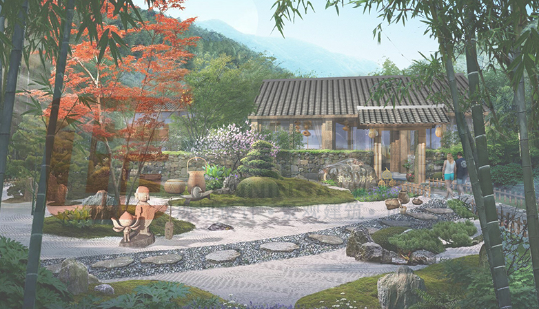 通過對項目地資源的調查和分析,綜合考慮園區周邊的資源和發展態勢,結合規劃區的發展定位和開發思路,根據文化主線,將整個項目劃分為四個功能分區:貴地來客?印象入口服務區、凈心開悟?野奢民宿度假區形神相和?云霧田園體驗區天人合一?山地養生休閑區。