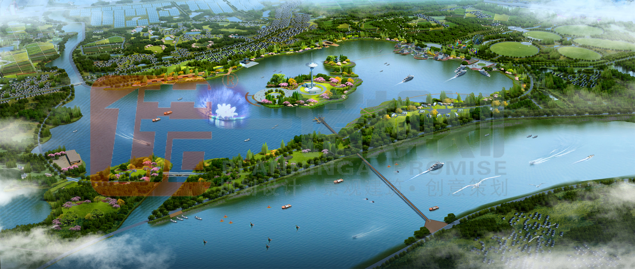 整個(gè)規(guī)劃圍繞“綜合接待服務(wù)、濱水游憩、農(nóng)業(yè)休閑體驗(yàn)、鄉(xiāng)村旅游觀光”的功能,以及考慮對外交通聯(lián)系方面的差異,農(nóng)業(yè)生產(chǎn)項(xiàng)目體系構(gòu)建規(guī)劃和休閑服務(wù)項(xiàng)目體系構(gòu)建規(guī)劃,結(jié)合規(guī)劃項(xiàng)目的發(fā)展定位和開發(fā)思路,將整個(gè)生態(tài)園區(qū)劃分為五個(gè)功能區(qū):濕地科技服務(wù)中心;一河兩岸景觀游憩帶;水趣田園體驗(yàn)片區(qū);美麗鄉(xiāng)村發(fā)展片區(qū);產(chǎn)業(yè)發(fā)展輻射片區(qū)。