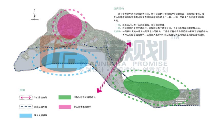 三板塊:一是指以黃龍水庫(kù)為主的濱水休閑板塊,二是指以特色農(nóng)業(yè)示范基地和紅豆杉育苗基地等為主的生態(tài)觀光板塊,三是指黃龍水庫(kù)以北以紅豆杉養(yǎng)生理念為主的養(yǎng)生度假板塊。