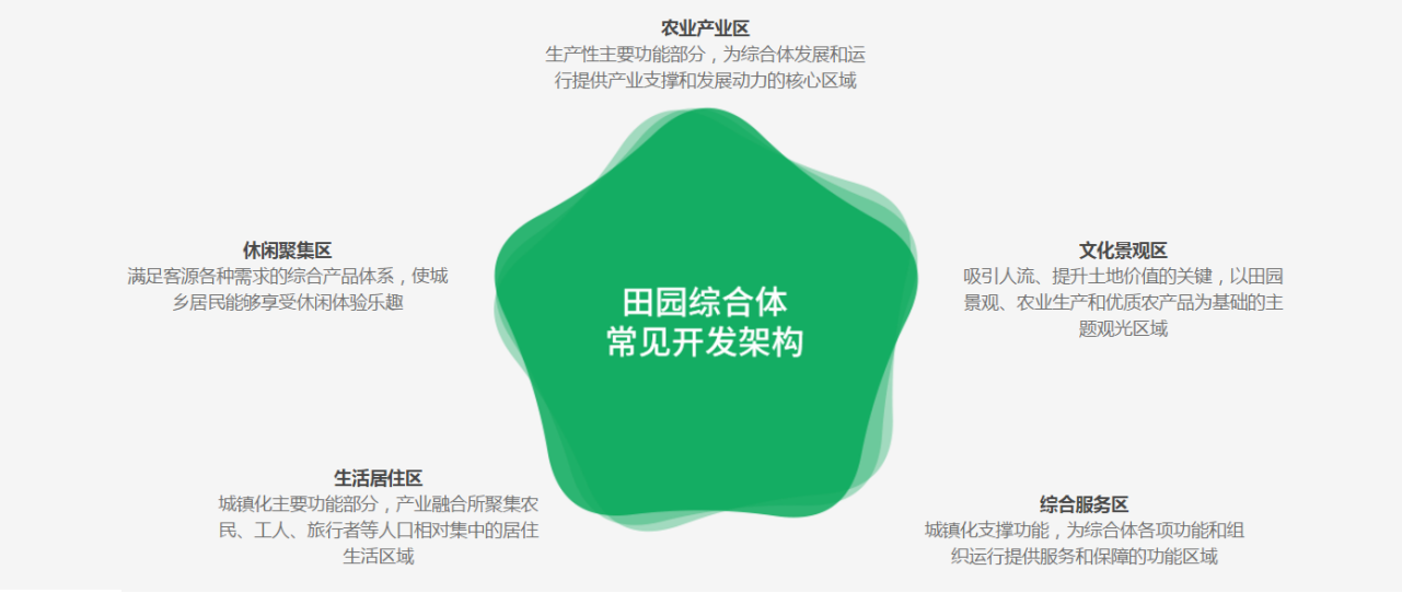 田園綜合體是集現(xiàn)代農(nóng)業(yè)、休閑旅游、田園社區(qū)為一體的綜合發(fā)展模式,可以滿足三個產(chǎn)業(yè)相互滲透融合的新動向,是在城鄉(xiāng)一體格局下,順應農(nóng)村供給側(cè)結(jié)構改革、新型產(chǎn)業(yè)發(fā)展,結(jié)合農(nóng)村產(chǎn)權制度改革,實現(xiàn)中國鄉(xiāng)村現(xiàn)代化、新型城鎮(zhèn)化、社會經(jīng)濟全面發(fā)展的一種可持續(xù)性模式。